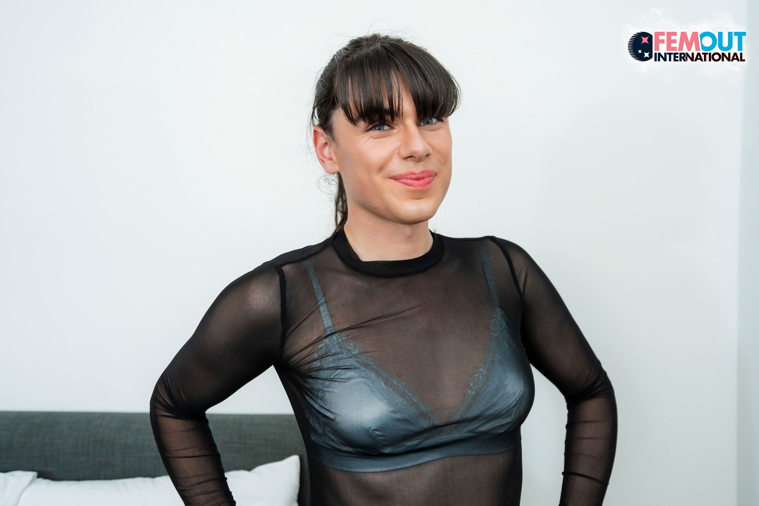 Description: Sara Pink doesn’t let the heat cool down after her devilish display - she’s right back with another set for Kalin, and this time it’s all about indulgence. Trading in latex and horns for sheer lingerie and pantyhose, she keeps the tease alive with her own brand of sexy charm. Sara’s body looks great stretched out across the bed, her pale skin against dark sheets, her cute breasts perking up as she strips down piece by piece. Soon, the softness gives way to hunger - she wraps her hand around her cock, stroking slow and steady... That cock gets harder, thicker, and Sara shows off every angle until the inevitable climax.